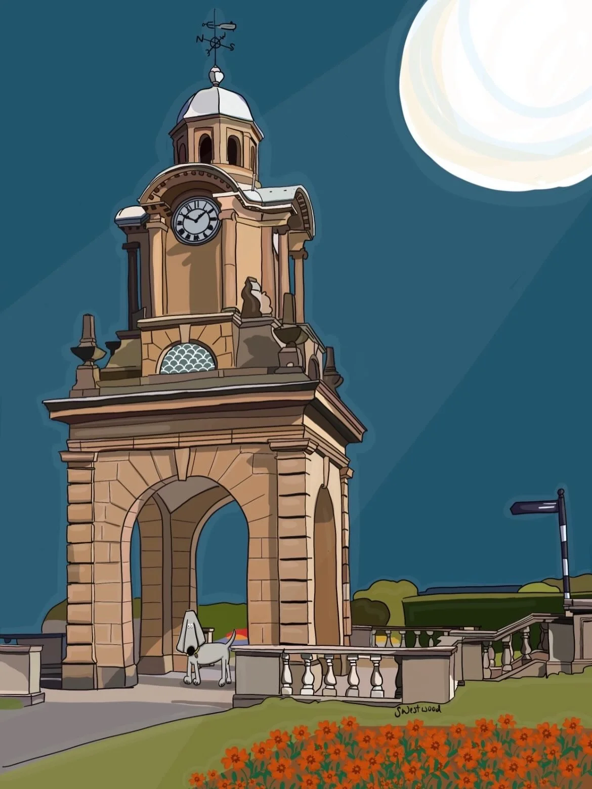 Hi, I’m Sarah Westwood, a Yorkshire Coast illustrator creating colourful dog wall art and joyful dog lover gifts inspired by one very special Weimaraner named Sprocket.